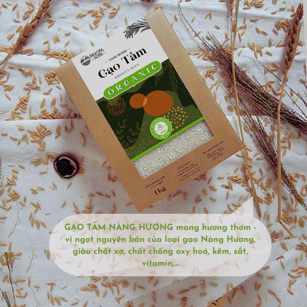 Được thu hoạch từ vùng lúa tôm chuyên canh U Minh Thượng kết hợp với quy trình chăm sóc kỹ lưỡng, công nghệ xay xát - đóng gói - bảo quản theo đúng tiêu chuẩn hữu cơ được chứng nhận của bộ khoa học công nghệ Việt Nam, GẠO TẤM NÀNG HƯƠNG thương hiệu MEKONG HOME rất giàu chất xơ, chất chống oxy hoá, kẽm, sắt, vitamin,…